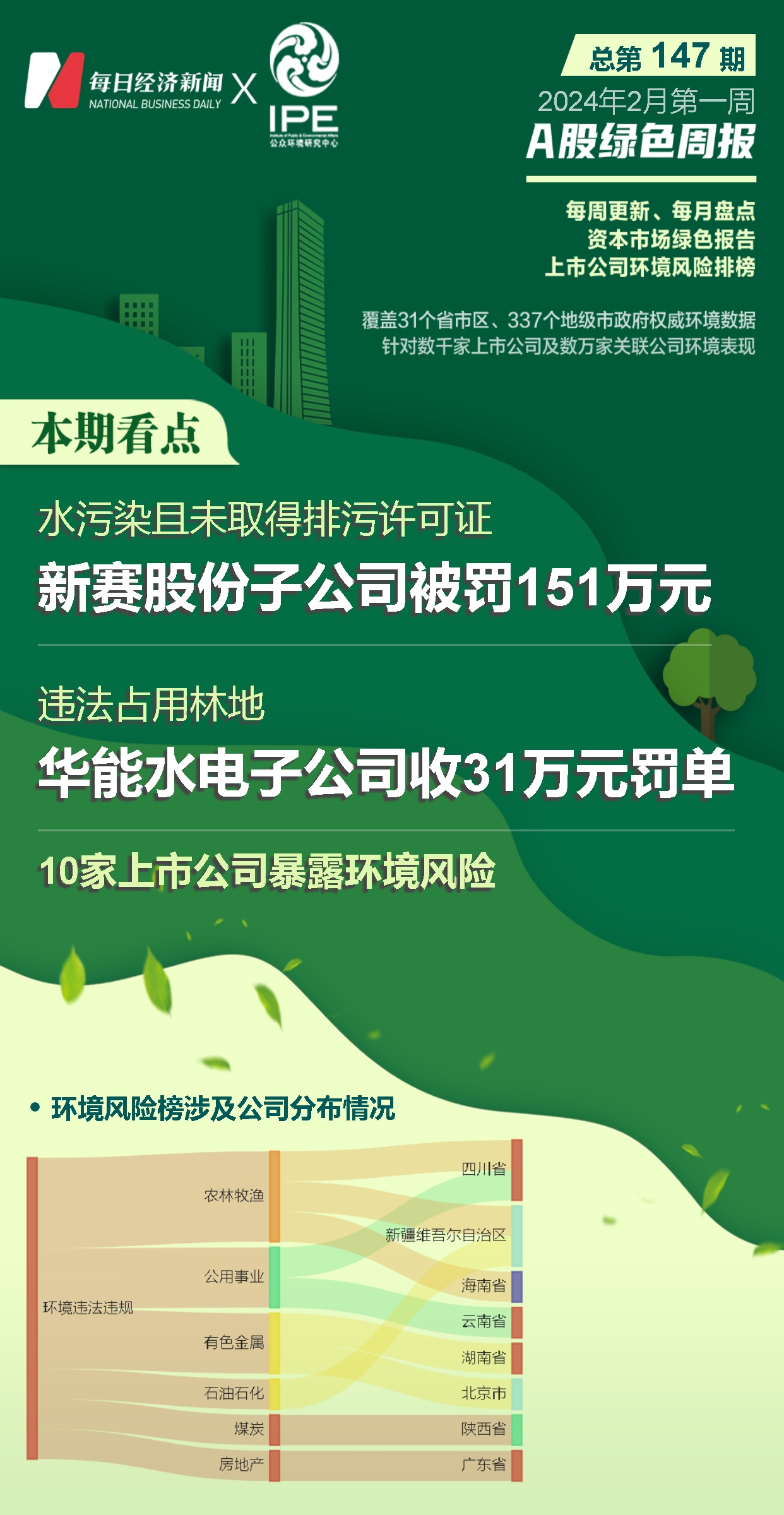 A股绿色周报丨10家上市公司暴露环境风险 新赛股份全资子公司被罚151万元