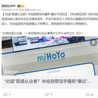 #米哈游#几乎不在公众视野露面的米哈游创始人蔡浩宇,近日罕见地在社交媒体做了一次观点性极强的公开发言。