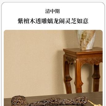 清中期 紫檀木透雕螭龙闹灵芝如意 尺寸:40×92×65 如意,