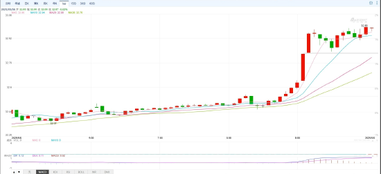 5月6日,现货白银向上触及33美元/盎司,日内涨1.66%。