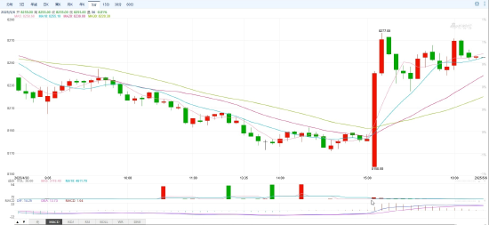 内盘方面,白银期货冲上8257。